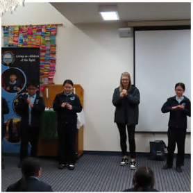 The whole school participated in Auslan Day, celebrating Australian Sign Language and deaf cultures. Students had the exciting opportunity to meet Naomi, a member of the deaf community who has been teaching them Auslan through videos. Students put their Auslan skills to the test with the help of an interpreter and asked Naomi many questions about her experiences of growing up deaf. A highlight of the day was students challenging Naomi in a fun alphabet singing competition.